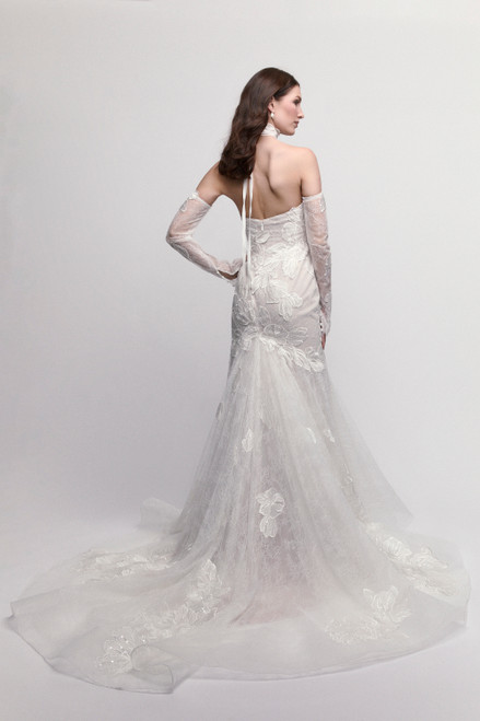 One of Watters classic silhouettes, but with an allover beaded bodice fit for a queen. We have coupled this highly dimensional detailing with a soft and flowy Soft net skirt to create a delicate...
