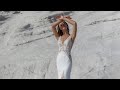 All eyes will be on you in this gorgeous gown Olente. This fit and flare wedding dress is the perfect choice to show off your curves. It showcases an impressive bodice with a plunging V-neckline and beautiful beaded lace that leads to an astounding side line with tattoo effect that will stun your guests. The fitted crepe skirt with a lace slip is adding a romantic touch to this bridal gown.